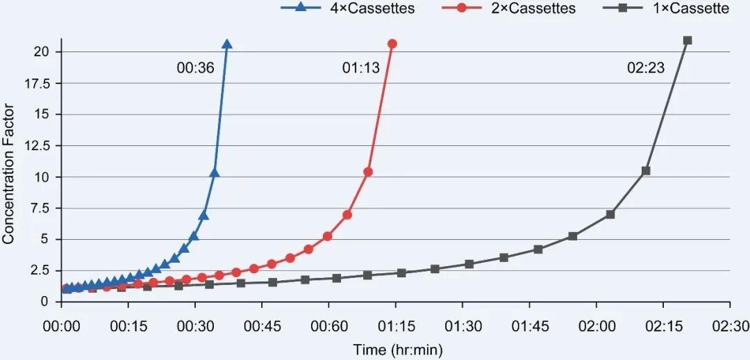 PRISM 50的模塊化設計使多個模塊串聯(lián)操作。這將最大吞吐量提高到3升,并與膜面積成比例地加快處理速度(見下圖)。