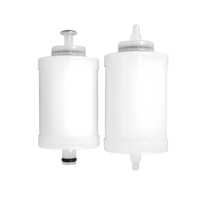 濾膜材料囊式濾芯一般是使用PP材質(zhì)作為外殼的,將(φ56或φ68)濾芯焊接在出口端殼體(φ72/89)上的,并將兩側(cè)端蓋焊接在一起的一種濾芯。囊式濾芯具有無任何粘合劑和化學(xué)物質(zhì)、過濾器體積小、過濾介質(zhì)損失小、不用安裝濾芯、軟管或者卡盤連接即可過濾等特點(diǎn)。濾膜囊式濾芯主要用于實(shí)驗(yàn)室試驗(yàn)研究、制藥行業(yè)小規(guī)模工藝驗(yàn)證及其他消毒過濾、粒子控制、預(yù)過濾等(如油墨、墨水過濾、無菌氣體過濾、化學(xué)試劑過濾生物制品(藥液)過濾、制藥行業(yè)小規(guī)模工藝驗(yàn)證實(shí)驗(yàn)室研究(培養(yǎng)液過濾)、腐蝕性液體過濾、小流量終端過濾膠粘劑、光刻膠過濾)